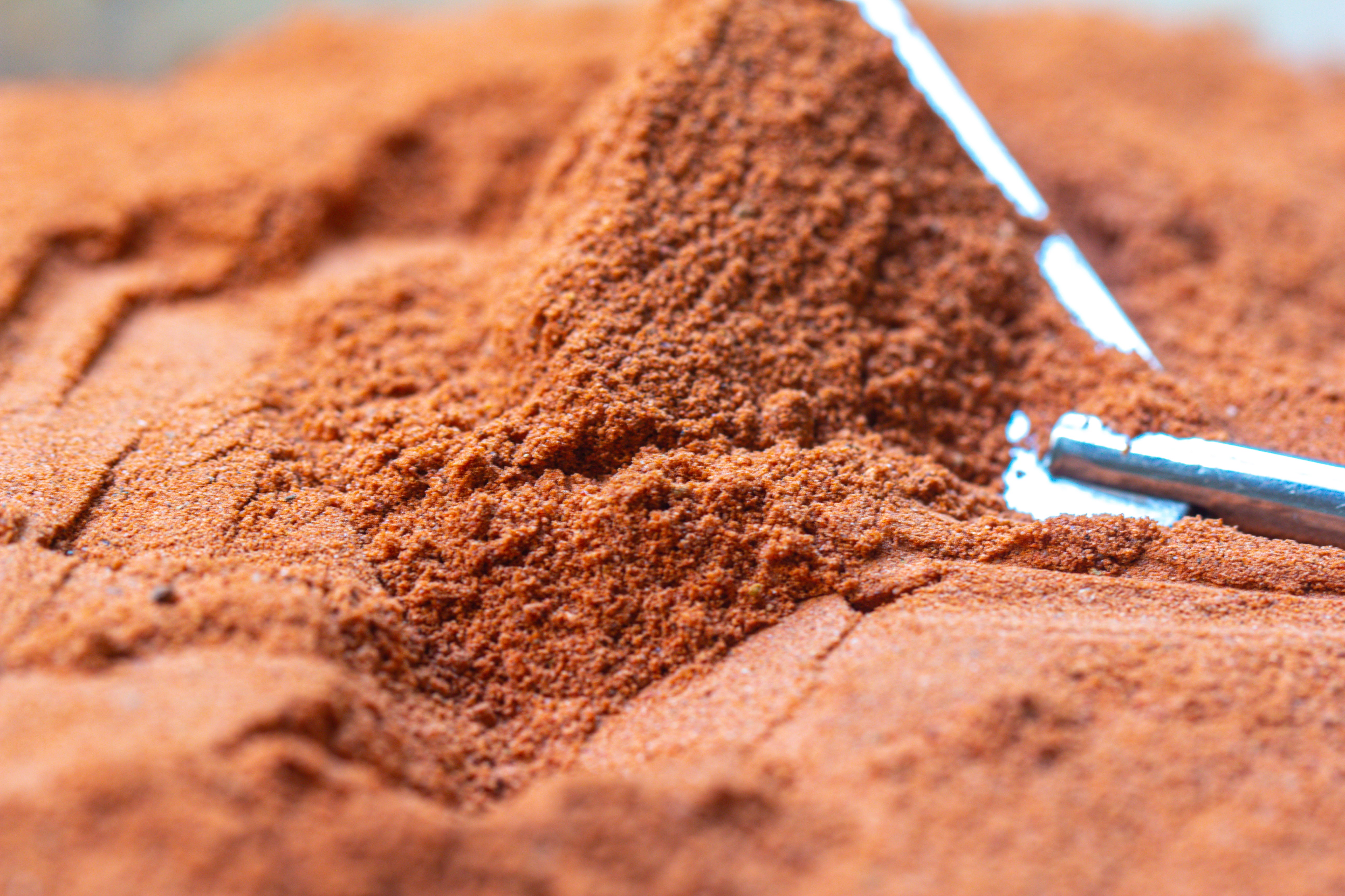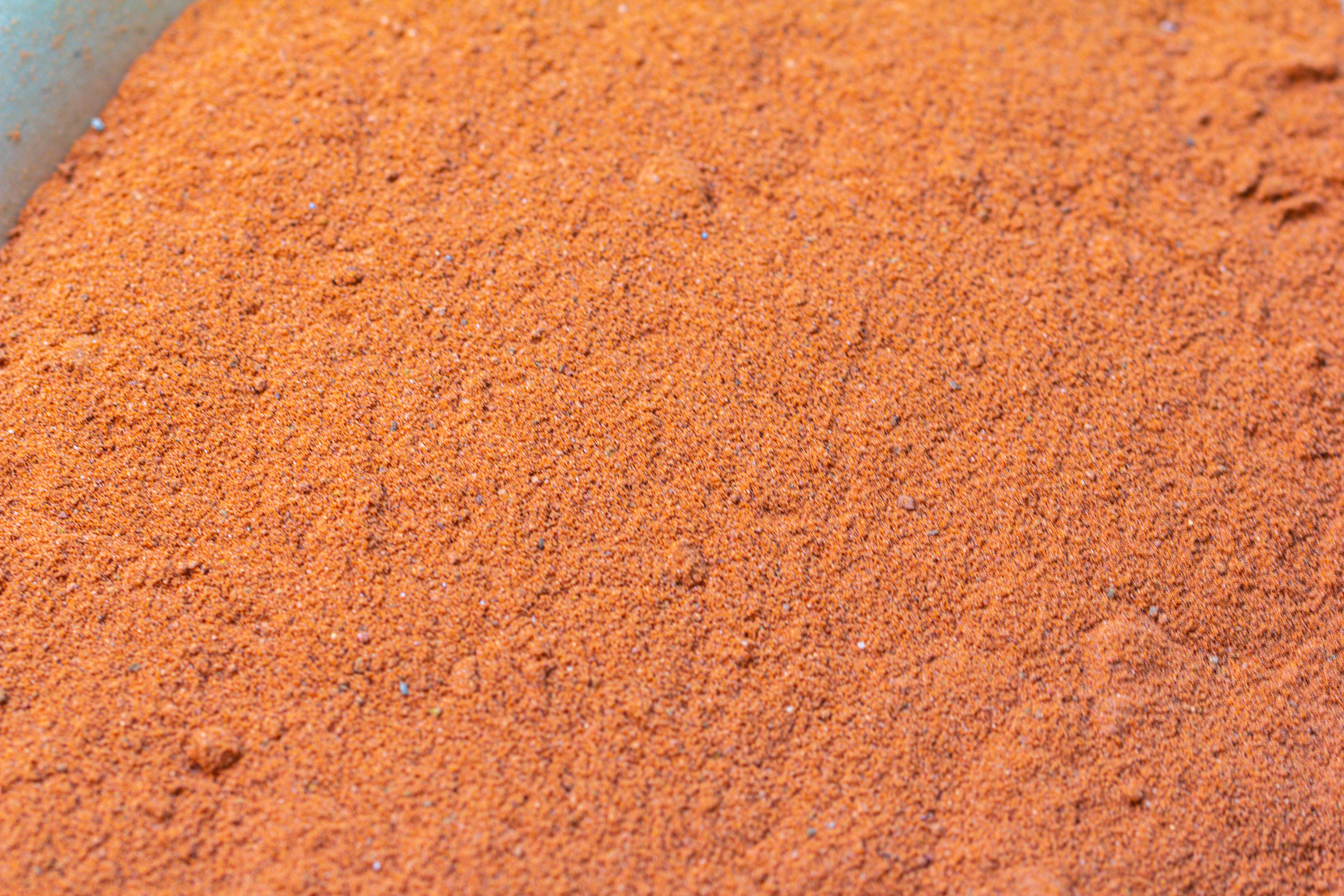 1 Natural red sand, desert sand with no added dyes or chemicals. The sand is sifted to eliminate impurities and achieve a uniform grain size.